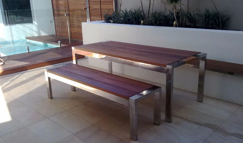 Choose from premium timbers Jarrah, Blackbutt, Marri paired with stainless steel or welded frames.